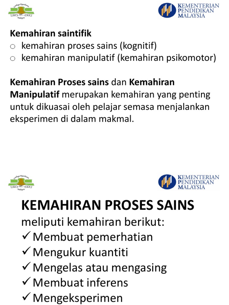KEMAHIRAN BERKOMUNIKASI Tajuk 1. Kajian ini bertujuan untuk mengkaji amalan pentaksiran Kemahiran Proses Sains KPS yang dijalankan oleh guru sains di sekolah menengah di Negeri Johor. Kemahiran proses sains di peringkat sekolah rendah dinyatakan secara eksplisit sebagai standard pembelajaran yang mesti dikuasai sebagai asas sebelum.