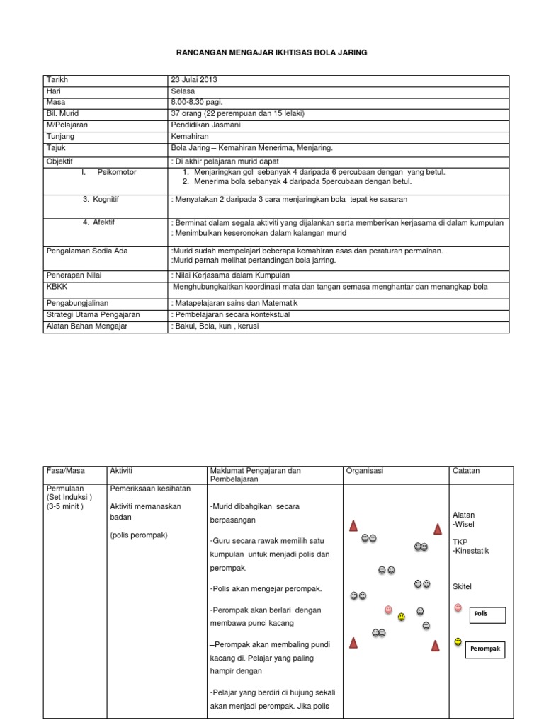 Rancangan Pengajaran Kemahiran Asasbola Jaring