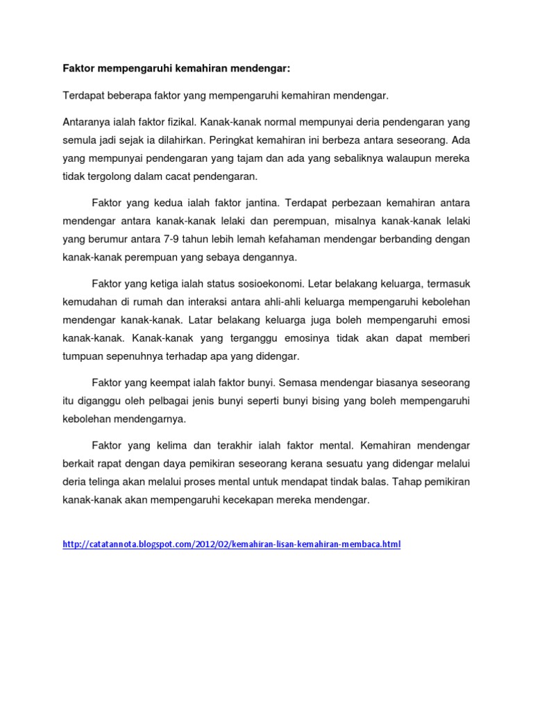 Faktor Mempengaruhi Kemahiran Mendengar Pdf
