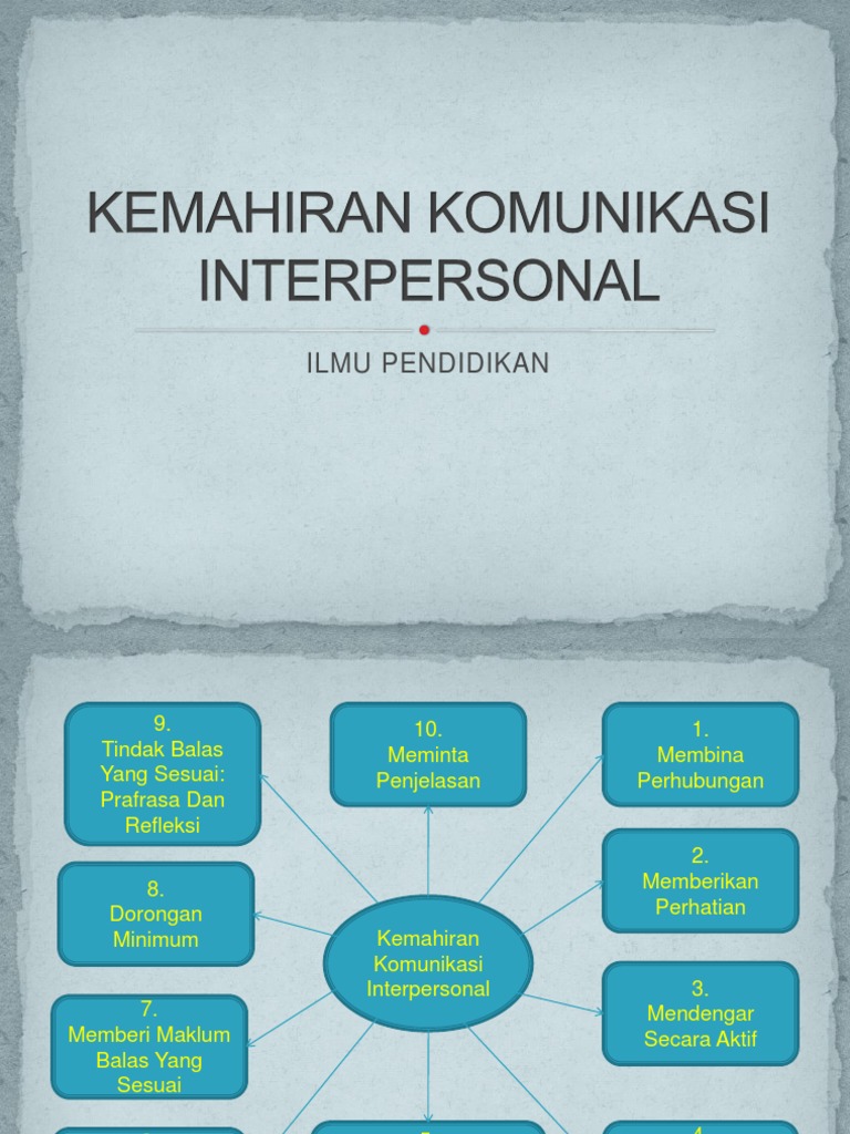 Bahawa kemahiran komunikasi penting dalam meningkatkan keyakinan diri pelajar. Dapatan keseluruhan menunjukkan bahawa tahap penguasaan elemen kemahiran interpersonal berada pada tahap sederhana tinggi min3901 sp 0635 manakala elemen kemasyarakatan peserta Bina Insan. Pengertian Komunikasi Interpersonal Komunikasi interpersonal digambarkan sebagai suatu komunikasi antara dua individu yang mana individu-individu tersebut secara fisik saling berinteraksi saling memberikan umpan balik satu sama lain.