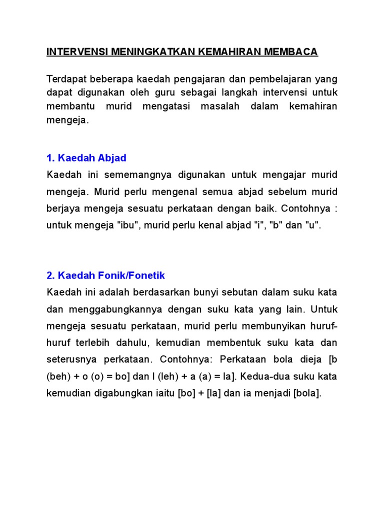 Jika ya kami sememangnya fahami dengan situasi anda. Sabran dan Rahim Syam 1985 menerusi buku yang bertajuk Kaedah Pengajaran Bahasa Melayu menyatakan bahawa kaedah abjad merupakan kaedah yang sering kali digunakan oleh guru dalam pengajaran kemahiran membaca di sekolah. Punca kanak-kanak lemah dalam ejaan.