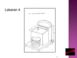 Lakaran 3D - memberi gambaran sebenar projek - daripada lakaran 3D panjang lebar dan tinggi projek dapat diketahui - lakaran 3D boleh dibuat melalui lakaran oblik dan lakaran isometrik b. KHB TING 3 - Bab 4 Tempat Kediaman. Deskripsi - bahan dan komponen jadual kerja lakaran dan lukisan kerja projek pembinaan dan pengujian projek.