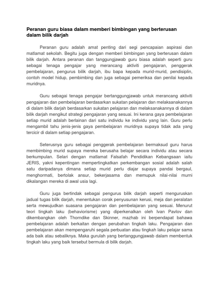 Peranan Guru Biasa Dalam Memberi Bimbingan Yang Berterusan Dalam Bilik Darjah Pdf