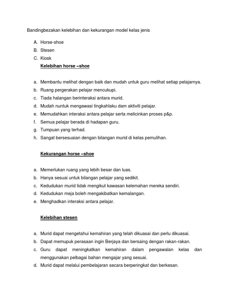 Bandingbezakan Kelebihan Dan Kekurangan Model Kelas Jenis Pdf